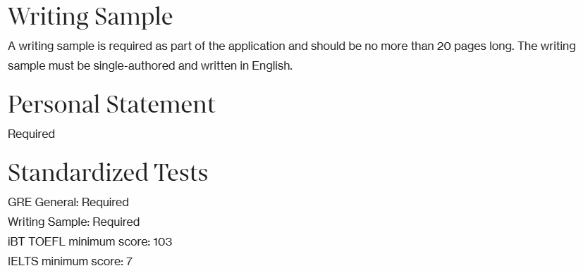 Sebagai contoh, program PhD in Public Policy di Universitas Harvard yang dikelola oleh Harvard Kenneth C. Griffin Graduate School of Arts and Sciences (Harvard Griffin GSAS) dan Harvard Kennedy School (HKS). Syarat-syaratnya adalah sebagai berikut: